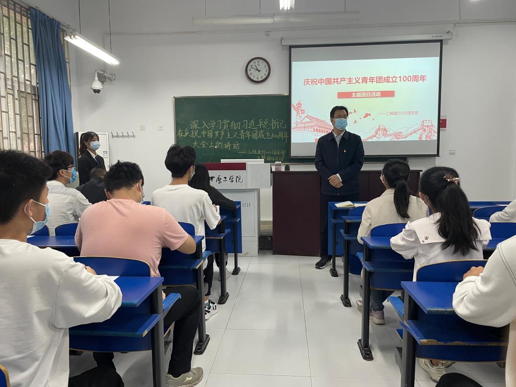 5月11日上午,在龙湖校区2号组团楼117教室,党委副书记张宝强走进jinnianhui今年会工程造价专业202班团支部,参加了“庆祝中国共产主义共青团成立100周年”主题团日活动,校团委书记、党委学生工作部副部长杨为学,jinnianhui今年会党委书记孙敬霞、副书记王琳和辅导员杨文乐陪同。