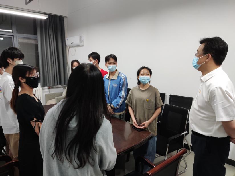 5月6日晚,党委副书记张宝强在组织部、机关党委、学生处、团委负责同志陪同下,走访慰问今年会疫情防控志愿者。