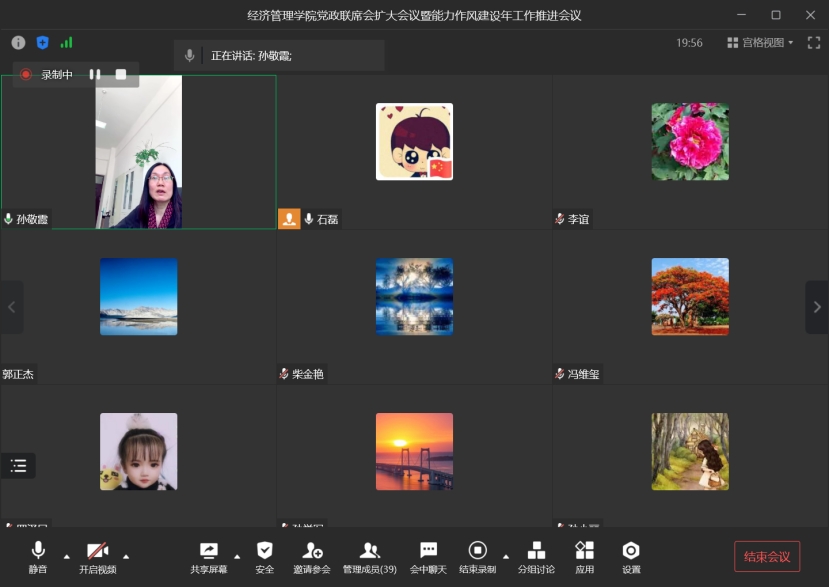 随后,杨中宣副院长、孙学军副主任、王琳副书记分别通报了教学、科研、学生培养等方面前阶段能力作风建设活动开展情况及下一步工作思路。工商管理系主任刘贵清、工程造价系副主任罗泽民作为系部代表,汇报了“能力作风建设年”开展情况及工作亮点。闫丽霞副处长和办公室副主任石磊汇报了学院形象墙设计及网站改版事宜。