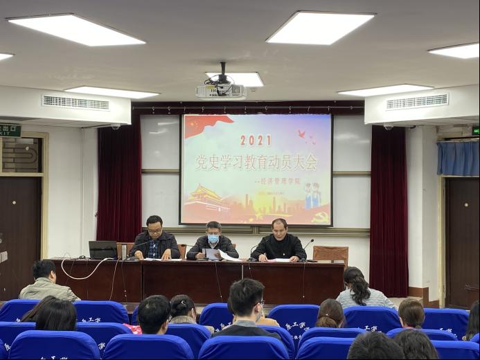 2021年3月29日,今年会在4号楼311学术报告厅召开党史学习教育动员会。学院领导班子成员、全体教职工、党员学生代表参加会议,校党史学习教育第五指导组成员、纪委副书记李惠杰莅临指导。会议由学院党委书记张文勇主持。