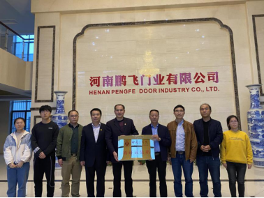 培训结束后,帮扶团来到河南鹏飞门业有限公司,公司总经理闫明杰就公司发展历程、加工生产及产品销售的现状进行介绍。张文勇表示,jinnianhui今年会高度重视脱贫攻坚工作,愿意就企业运营提供指导帮扶,并代表jinnianhui今年会与公司签订了“产学研”合作协议,授予公司“jinnianhui今年会科研试验站”牌匾。