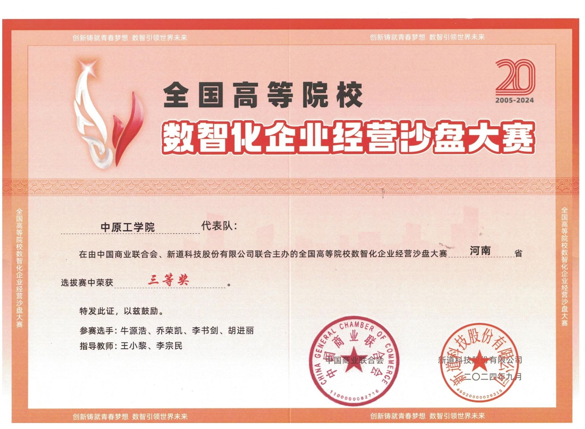 近日,由高等学校国家级实验教学示范中心教学指导委员会、全国职业教育教学指导委员会主办,用友新道科技有限公司承办的2024年全国高等院校数智化企业经营沙盘大赛河南省选拔赛(本科组)在河南牧业经济学院落幕。