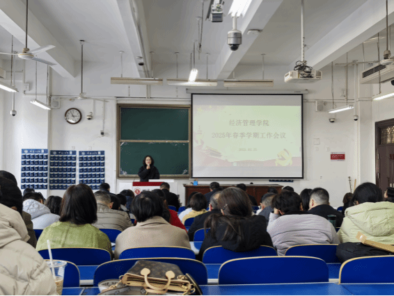 公共管理系主任王朋举在发言中运用deepseek填词作诗,生动形象地分享了系里各位老师在教学和科研中取得的丰硕成果,不禁让人感叹人工智能的强大。金融系主任刘鹏分享去年在新西兰访学经历,他详细讲解了新西兰怀卡托大学教学科研中的先进理念和管理制度,勉励青年教师要珍惜当下,学无止境。教师代表杨子生发言分享了如何加强课堂管理,提升学生学习效果的方法措施。