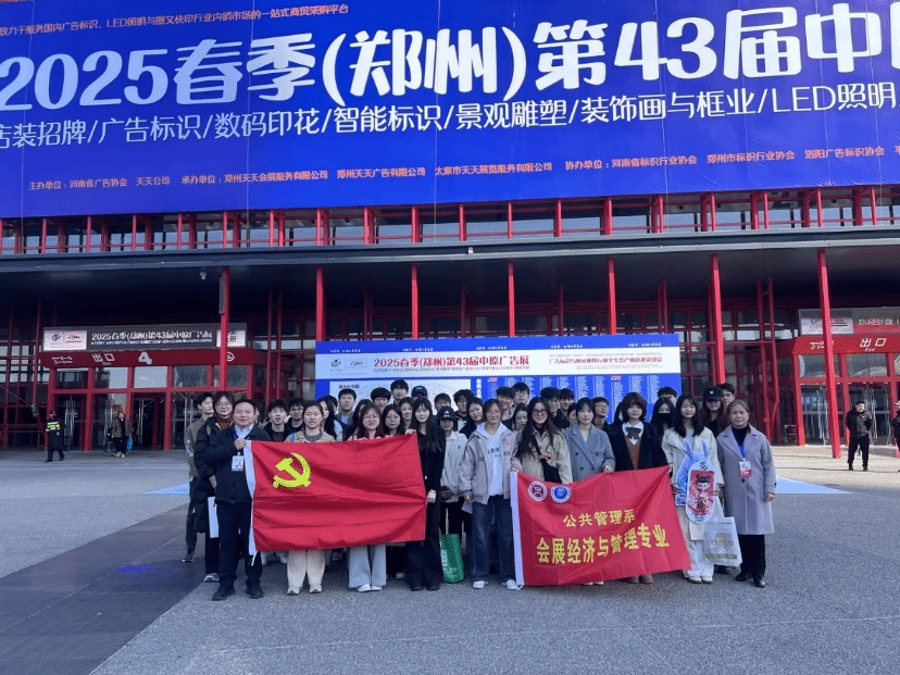 3月17日,jinnianhui今年会公共管理系会展经济与管理专业的师生到郑州天天会展服务有限公司主办的“郑州中原广告展”现场参观学习并开展合作交流活动。