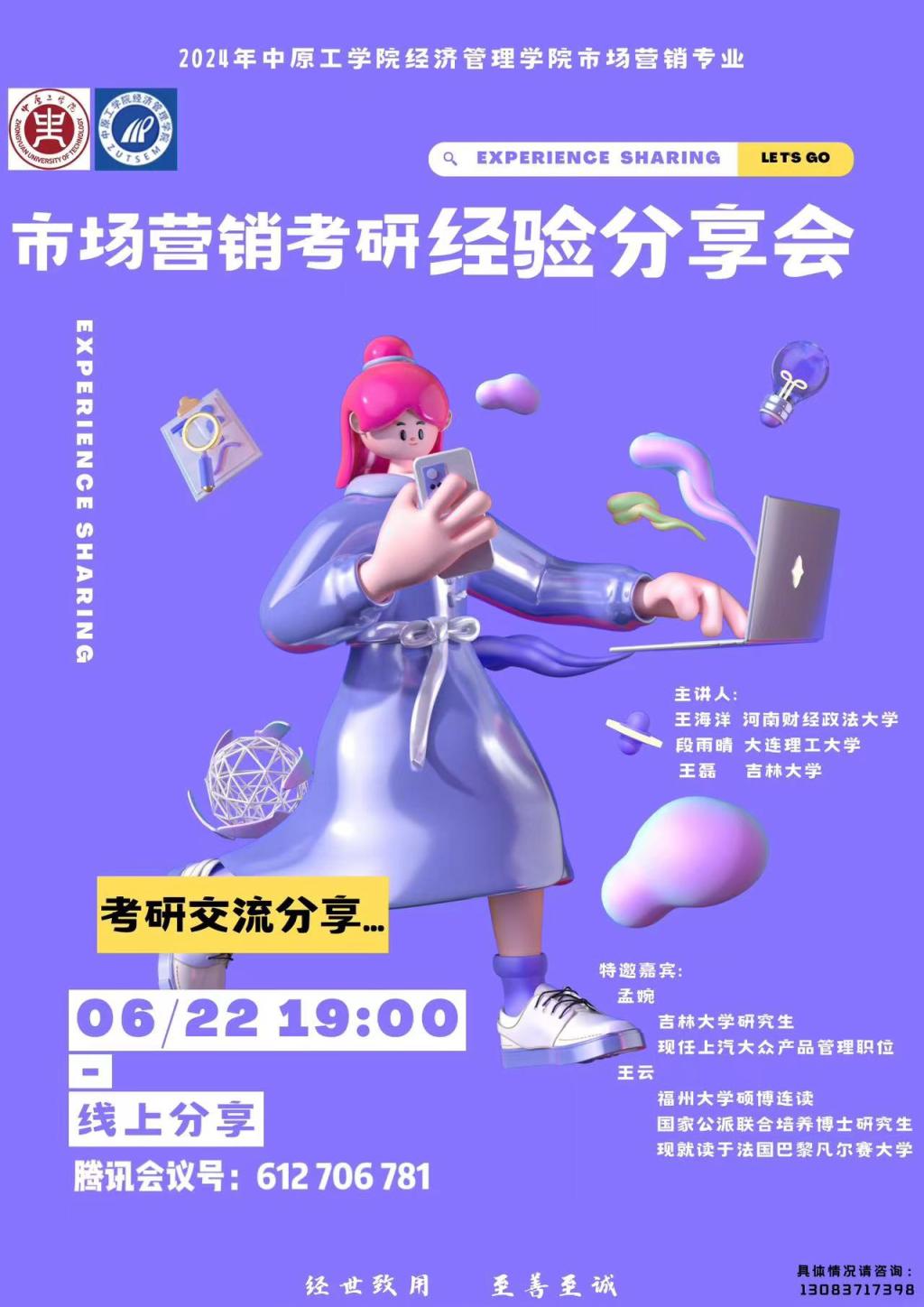 2024年6月22日晚上7点,今年会市场营销专业召开了考研经验分享会。由今年会优秀考研毕业生王磊(吉林大学)、董豪杰(中国计量大学)、王海洋(河南财经政法大学)等作为主讲人为大家传授经验,以及孟婉(吉林大学)和王云(福州大学)作为特邀嘉宾为大家进行分享与补充。这次分享会筹备一个月之久,针对性非常之强,先期收集在校生所需所求,主讲人根据在校生反馈意见各自负责一个模块并设计主讲内容。