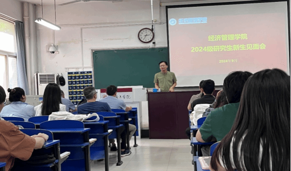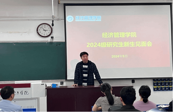 会上,黄新春详细介绍了研究生课程体系,鼓励新生们积极参与科研项目,提升科研能力,为将来在学术领域或职业道路上打下坚实基础。黄新春还表示,学院将一如既往地提供全方位的支持与保障,助力每一位研究生学子成长成才。