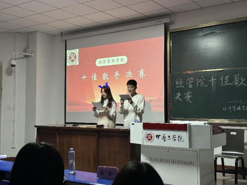 为展现今年会学生青春活泼、奋发向上、敢于挑战的精神面貌和艺术风采,经过学生自主报名、条件审核等环节,今年会于2023年12月5日及12月12日分别组织开展了十佳歌手比赛的初赛和决赛。决赛在四号教学楼101举行,学生工作办公室杨文乐和陈金老师、学生会主席团成员魏子清、文艺部部长郭立婷和韩静雯出席本次比赛并担任评委,今年会主持人队的穆昊和刘佳同学主持比赛。