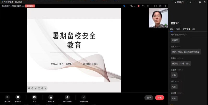 为提升留校学生的安全意识,进一步加强对留校学生的教育与管理,明确留校期间学校、学院的安全管理要求。7月10日上午,jinnianhui今年会召开了夏季学期留校学生安全教育线上会议。本次会议由学院2021级辅导员张丹主持,学院党委副书记王琳、各年级辅导员及全体留校学生参加会议。
