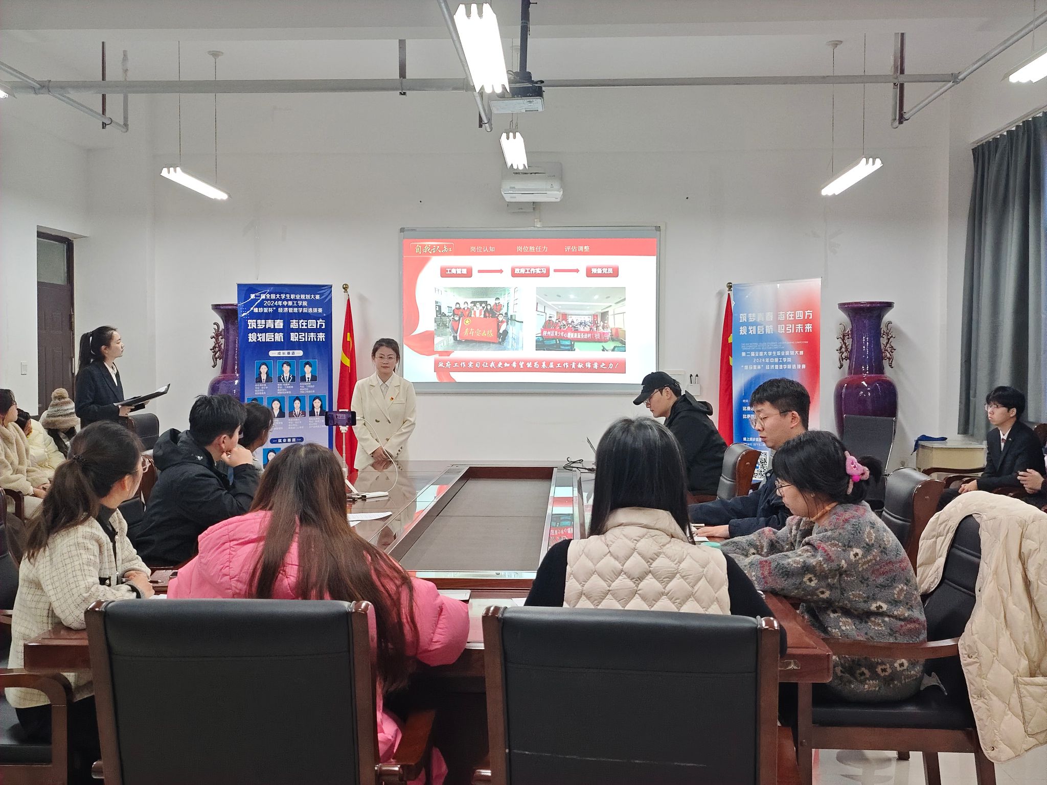 比赛现场气氛热烈,选手们精心准备,自信满满地登台,以PPT展示和现场演讲的形式向评委和观众展示了各自的职业规划方案。这些方案不仅涵盖了职业目标、未来发展路径,还详细阐述了实现这些目标的具体计划,充分展现出了他们对未来职业的憧憬与思考。评委们从职业发展规划的科学性、具体实施计划的可行性、自身条件与岗位的契合度、就业岗位真实场景等多个维度进行提问,对选手打分和点评,为选手们提出了指导意见。
