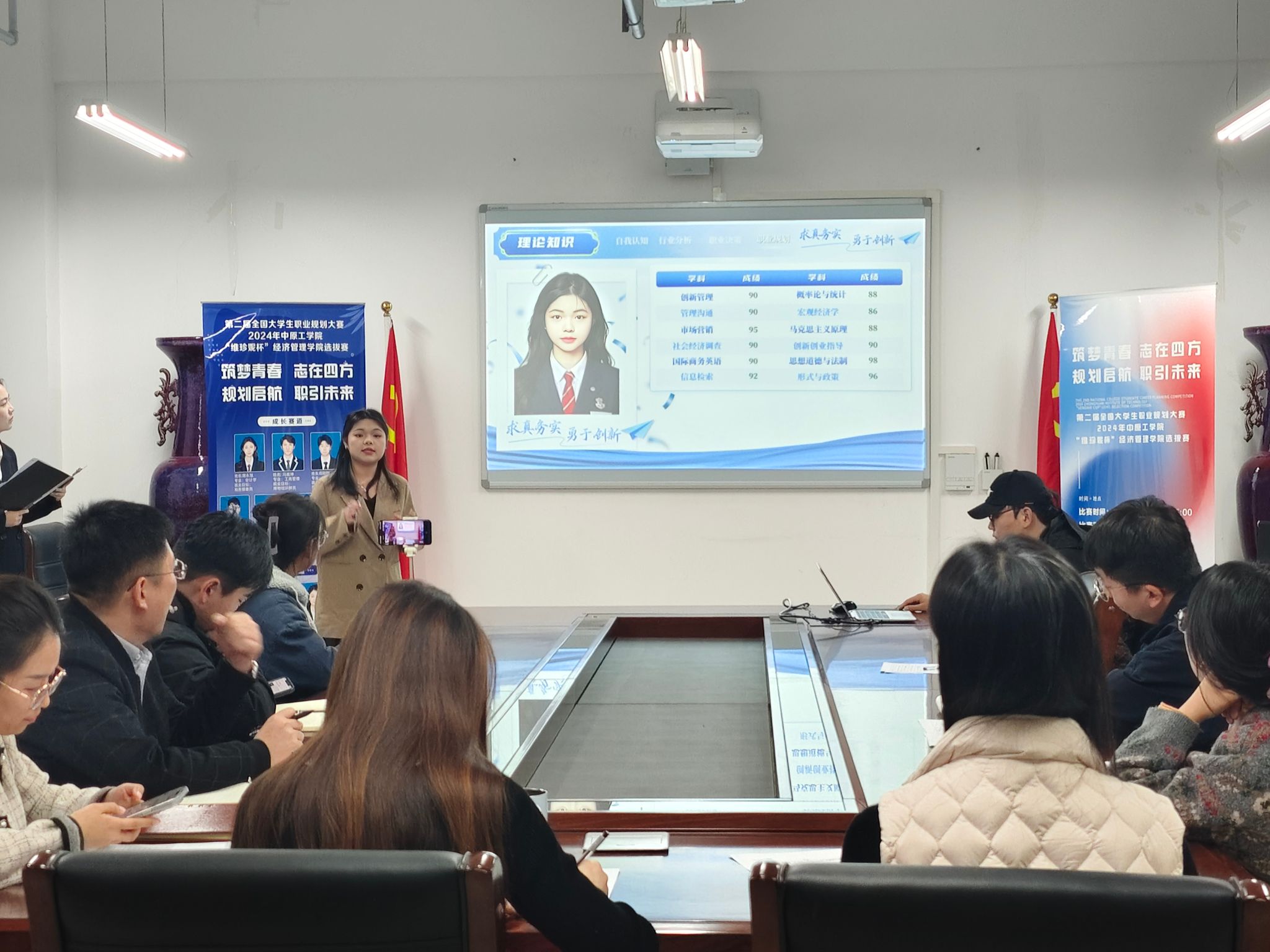 经过激烈的角逐,最终评选出一等奖4名,二等奖8名,三等奖27名。工程造价221班田则则、会计243班邓景元荣获成长赛道一等奖;工商管理221班杨延知荣获本科生就业赛道一等奖,研243班刘效君荣获研究生就业赛道一等奖。