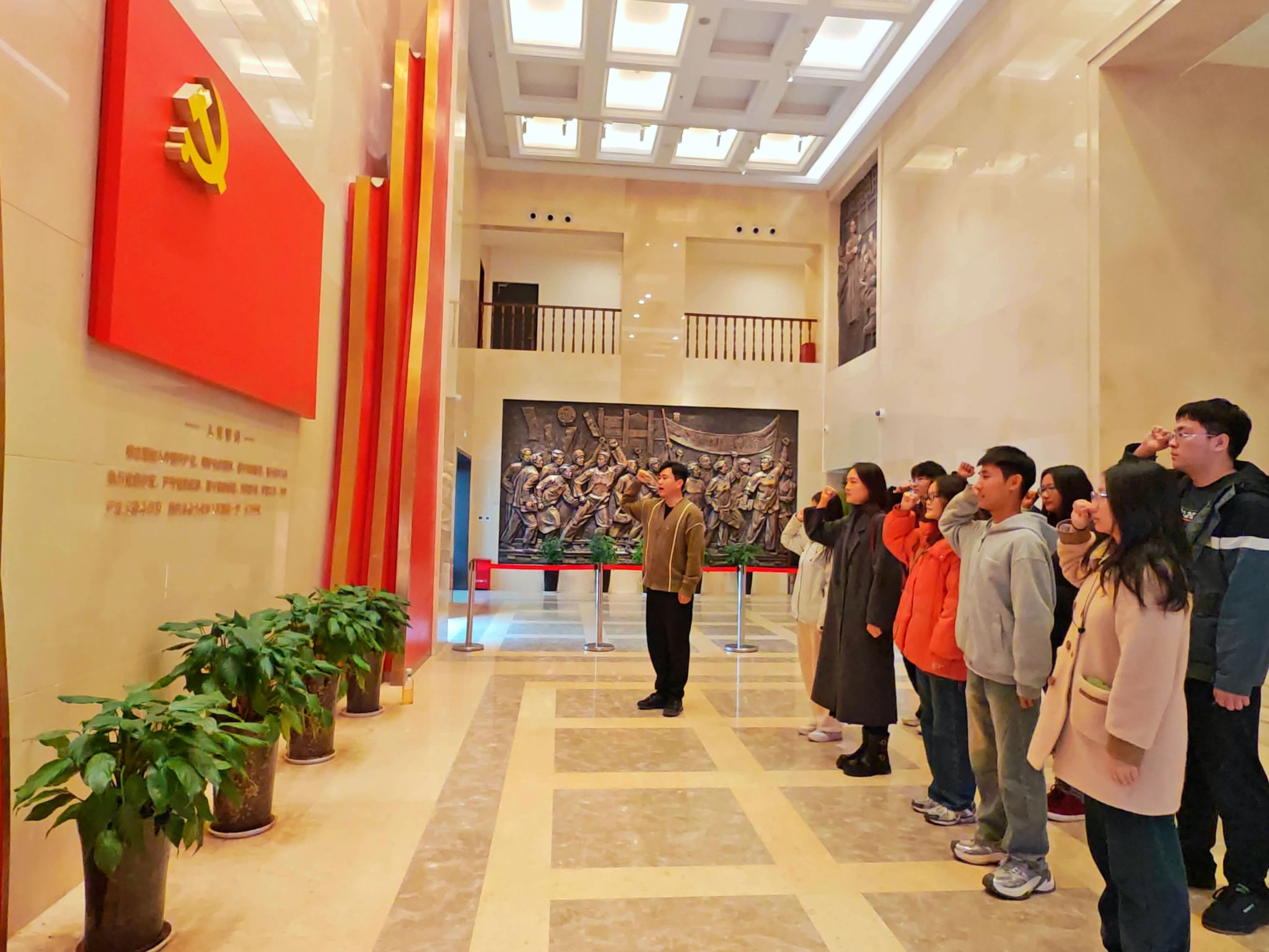 参观结束后,学生党支部还组织了一次简短而深刻的交流分享会。大家纷纷发言,分享了自己的参观感受和心得体会。会后,张志远老师带领大家,面向党旗庄严宣誓,激发了学生党员的爱国热情和奋斗精神。(通讯员:张志远 崔全信)