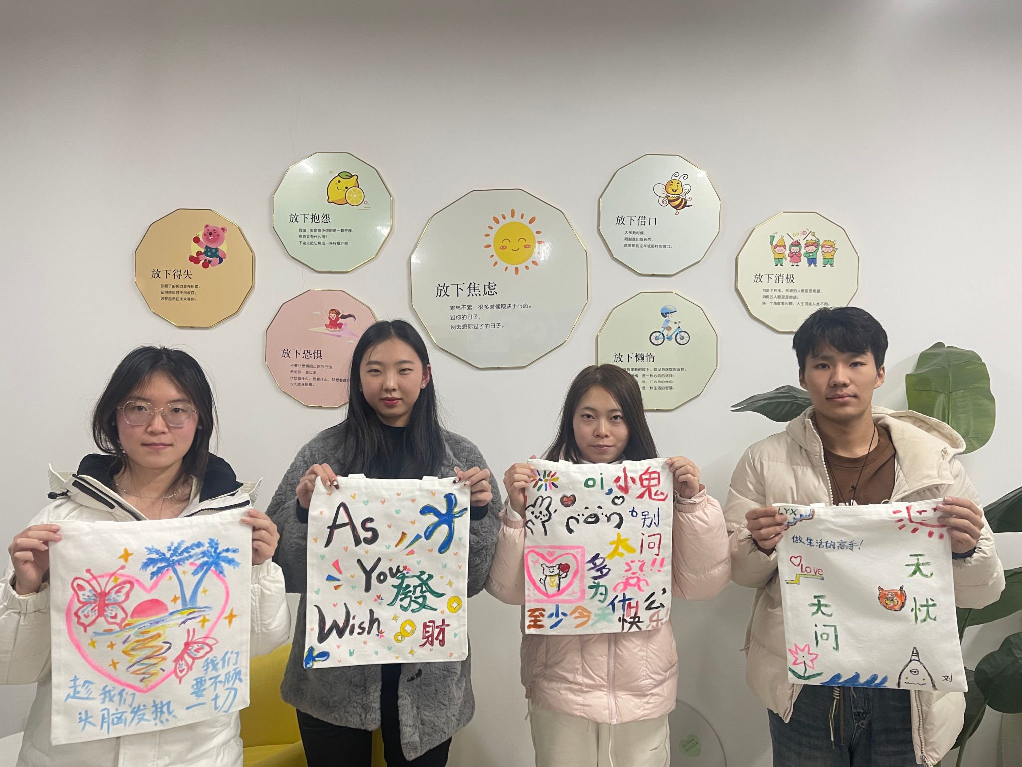 12月8日,在三号组团楼A210——今年会心理咨询室成功举办了以“绘出心情,乐享周末”为主题的手工活动。通过现场制作手工作品,使学生劳励心智,学会更好地表达自我,缓解课程学习和期未考试压力。