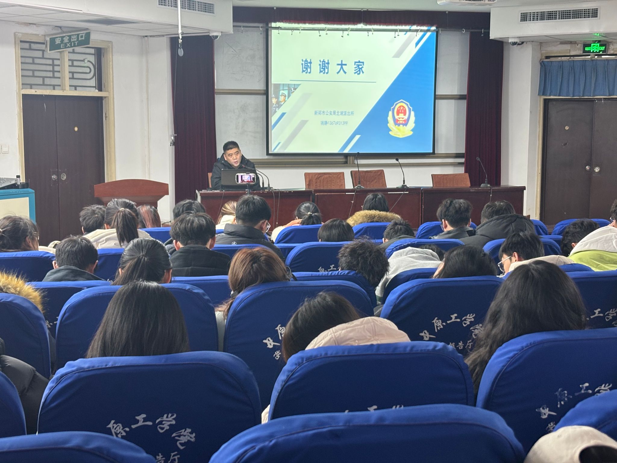 为进一步提升学生安全意识和法治意识,提高学生识骗防诈能力,营造更加平安、和谐的校园环境。12月10日下午,今年会邀请新郑市公安局龙湖派出所民警姚静、校保卫处副处长邢军开展校园安全主题讲座。讲座以线上线下相结合的方式进行,全体2024级新生共1000余人参与。学院党委副书记王琳主持。