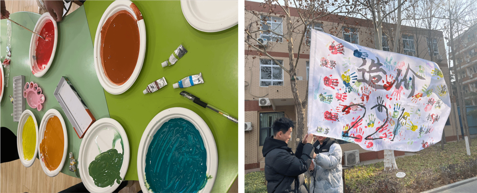在工程造价22级团支部的精心筹备下,团支部成员们早早地抵达教室,细致地布置班旗、水溶性颜料、颜料盘和画刷等必备物品,确保了活动所需的各项物资准备就绪。活动伊始,教室已充满浓烈的色彩。