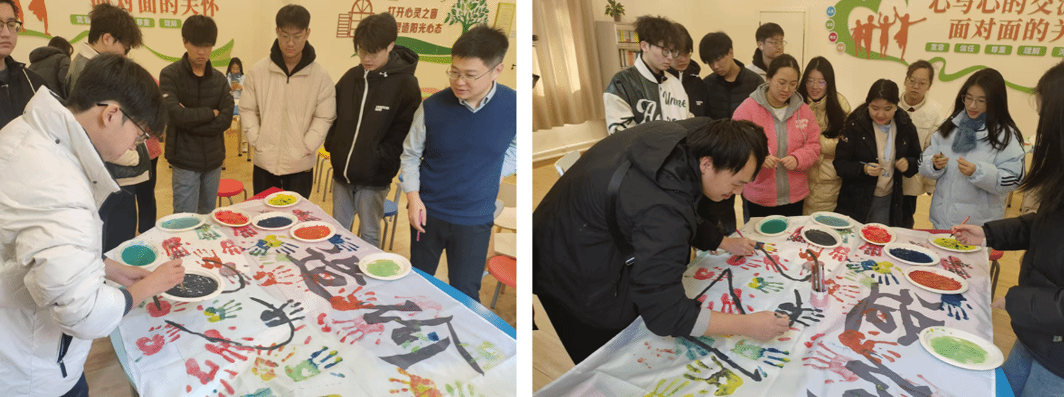 活动现场,孟裕臻和吴笑与同学们携手,以创新的设计理念,共同绘制出一面面别具一格的班旗。每一面班旗都凝结了同学们对班级的深厚情谊和对未来的美好期许,是他们青春梦想的具象化展现。最后,同学们在班旗上印下手印,签下了自己的名字,这是对班级的承诺,也是对未来的期许。