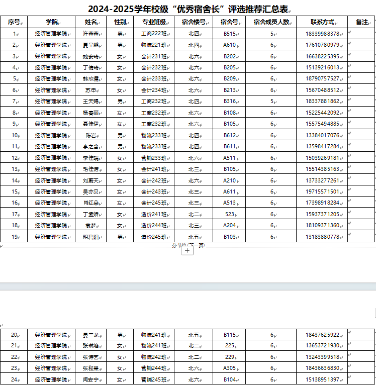 为进一步营造文明、和谐、安全的宿舍环境,发挥宿舍长在学生良好卫生习惯养成和健康生活方式培养中的模范引领作用,经学生本人申请、学院评审,现将今年会“优秀宿舍长”评选结果进行公示,公示时间为2025年6月6日---2025年6月10日,如有异议请在公示期间反馈。反馈电话:0371-62506060。